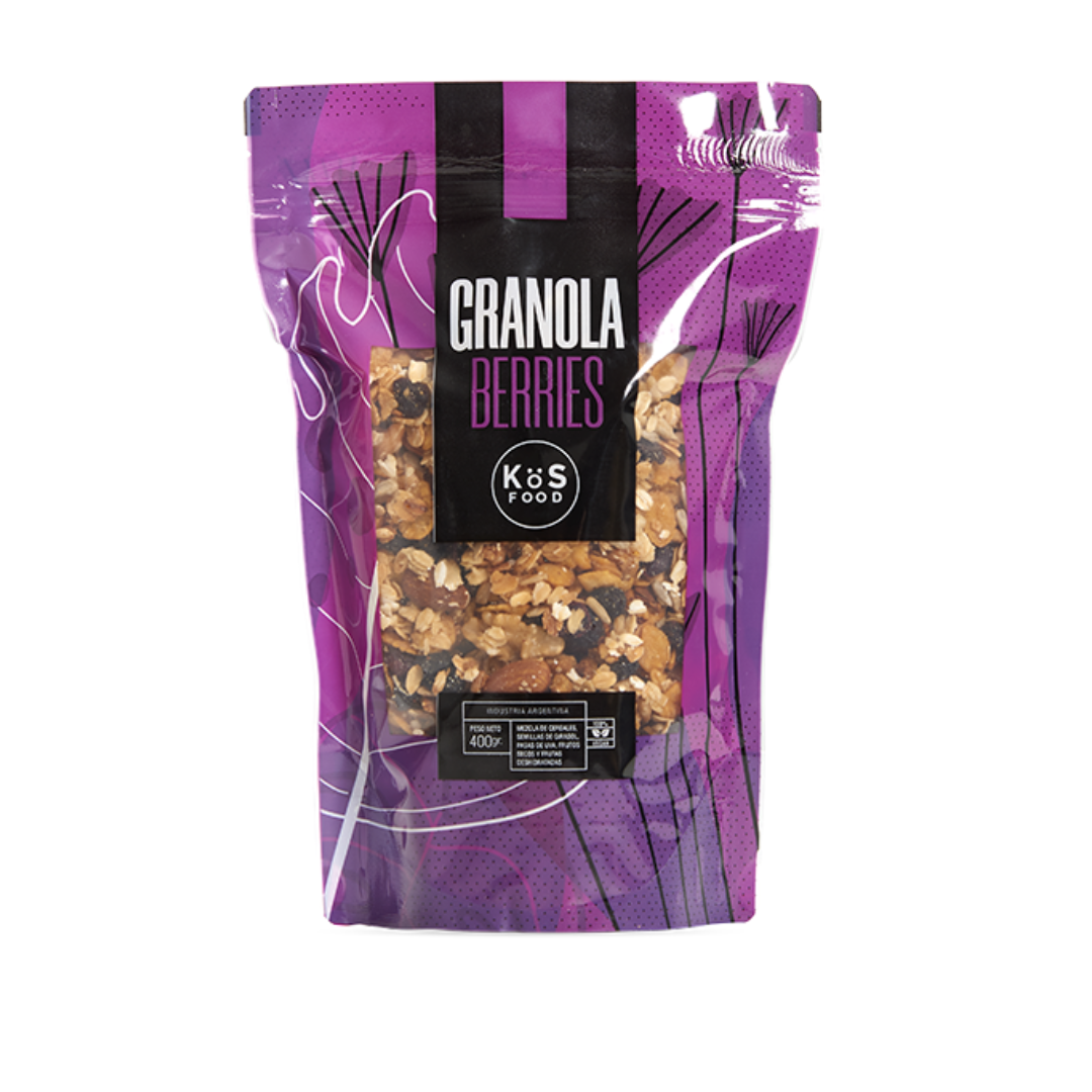 Ingredientes: Avena arrollada gruesa – Maní tostado – Pepita de girasol – Jarabe de maíz – Copos de maíz – Almendras – Nueces- Arándanos deshidratados.