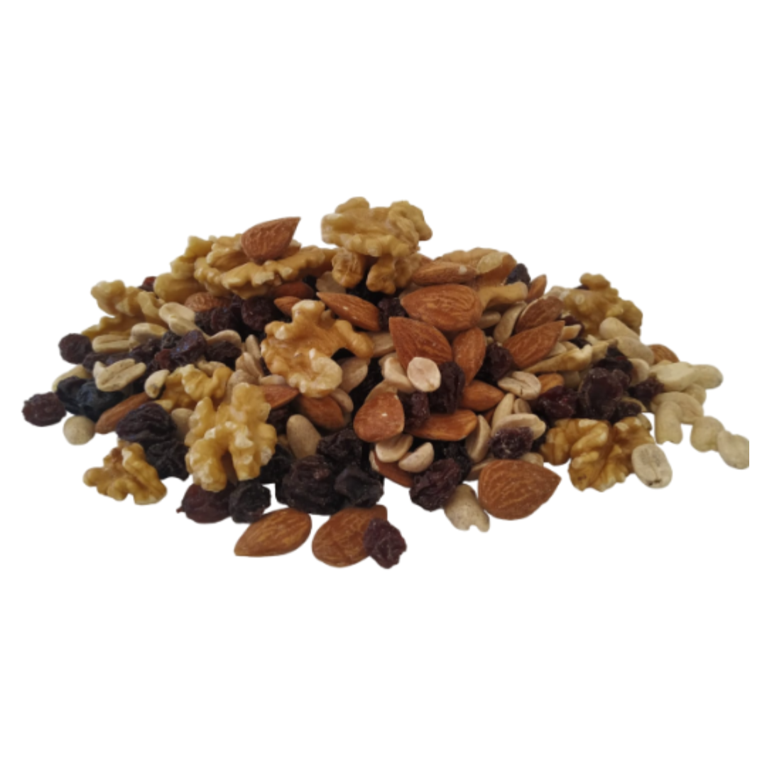 Contiene: Almendras, nueces, pasas y maní.