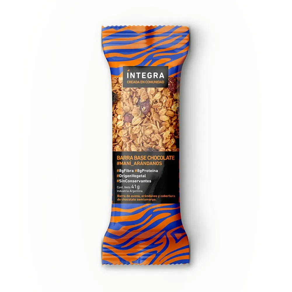 Ingredientes: Avena, miel, proteína vegetal texturizada, maní, fibra alimentaria (raíz de achicoria), cajú, arándanos.