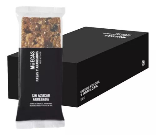 Barrita de Cereal Muecas sabor Pasas y Arándano sin Azúcar añadida, ideal para quienes buscan una opción saludable y apta para diabéticos. Esta barrita de 45g combina ingredientes destacados como avena, pasas de uva, maní, almendra y arándano, ofreciendo un sabor único y nutritivo. Aunque no es libre de gluten ni orgánica, esta barrita es perfecta para aquellos que desean un snack sin azúcar y con edulcorante. Ten en cuenta que no es apta para veganos ni intolerantes a la lactosa. Cada unidad viene en perfectas condiciones y con vencimiento garantizado. ¡Lleva contigo esta práctica y deliciosa opción de la línea Barras de Cereal de la marca Muecas!