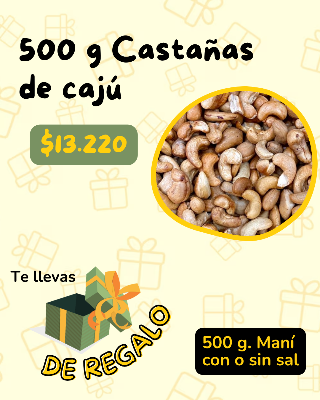 PROMO: 500 g. Castañas de cajú + 500 g. Mani (DE REGALO!)