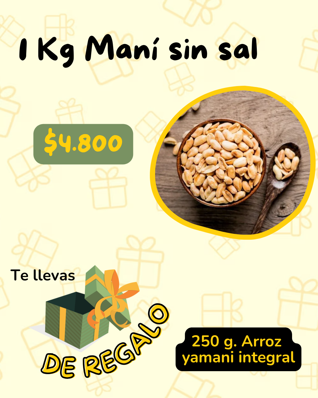 PROMO 1 kg Maní sin sal (Regalo: 250 g Arroz yamani)