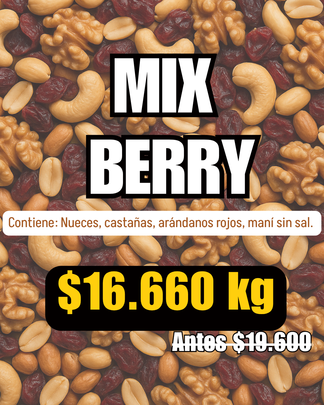 CONTIENE: nueces, castañas, arandanos rojos, mani sin sal